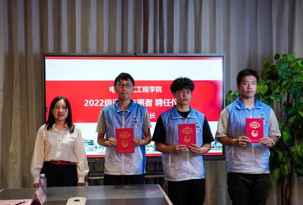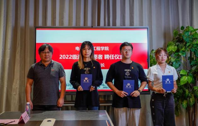 公司副经理王晓军、赵晓丽,分别为2022级导生和2022级迎新志愿者颁发聘书,对各位班导生的殷勤付出、对志愿者“小电君”们为新生的无私服务表示肯定。