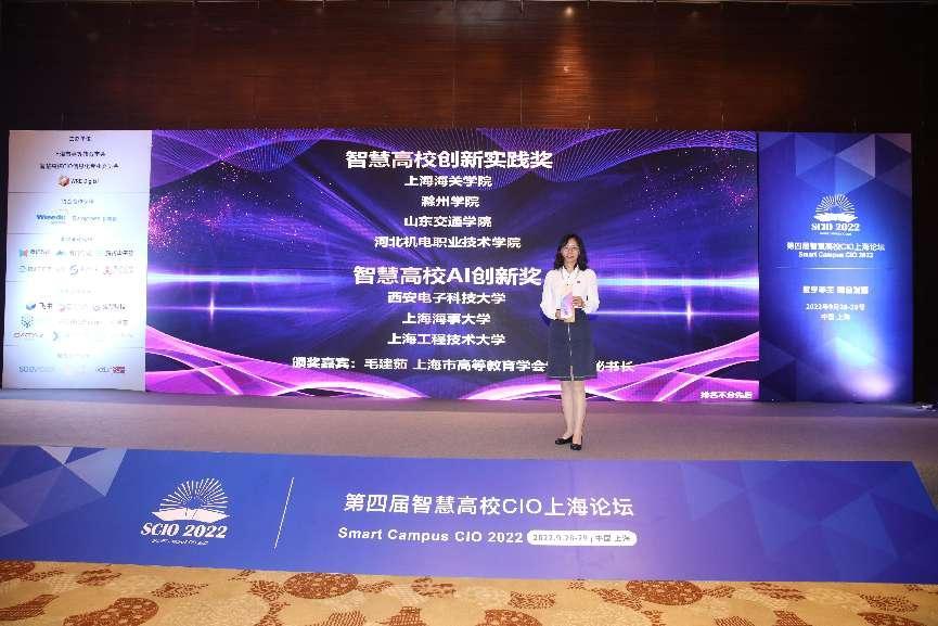 2022年9月28-29日,由上海市高等教育学会和WRE Digital联合主办的第四届智慧高校CIO论坛在上海成功举办。本次论坛以“数字孪生,融合发展”为主题。公司荣获大会评选的2022“智慧高校AI创新奖”,公司方志军教授荣获“智慧高校数字化转型优秀人物”。公司3044永利集团经理李媛媛教授应邀参会领奖。公司人工智能产业研究院经理方志军教授应邀参会领奖并在大会上做“人工智能+X公司产品与产教融合实践”的主题报告。