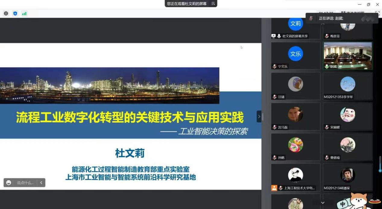 杜文莉教授作“流程工业数字化转型的关键技术与应用实践”的主旨报告。分析了流程工业目前所面临的挑战,从流程工业供应链中的计划与调度决策、流程工业生产计划与调度决策几个方面,介绍了当前的研究现状、关键技术、应用案例以及未来发展方向。