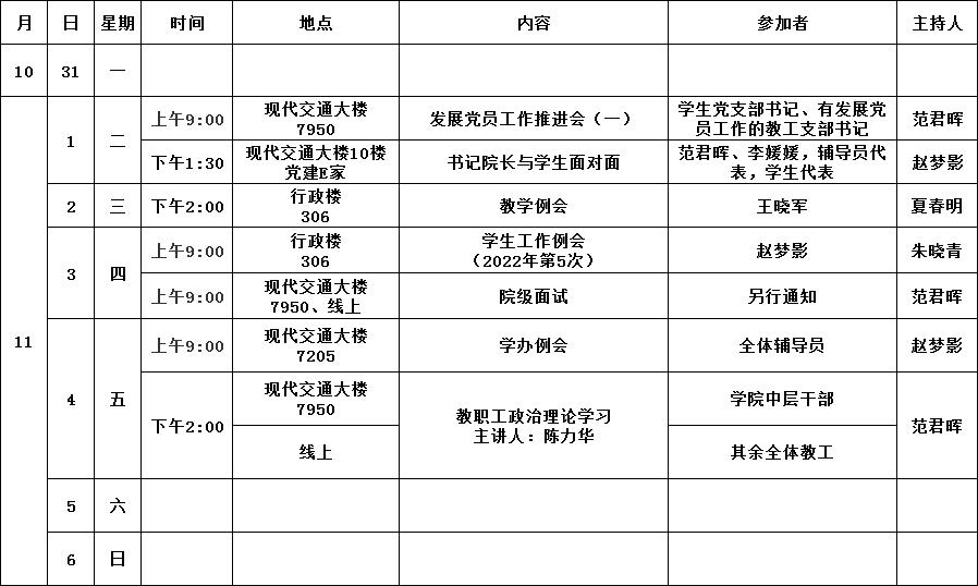 公司第9周活动安排(2022年10月31日-2022年11月6日)