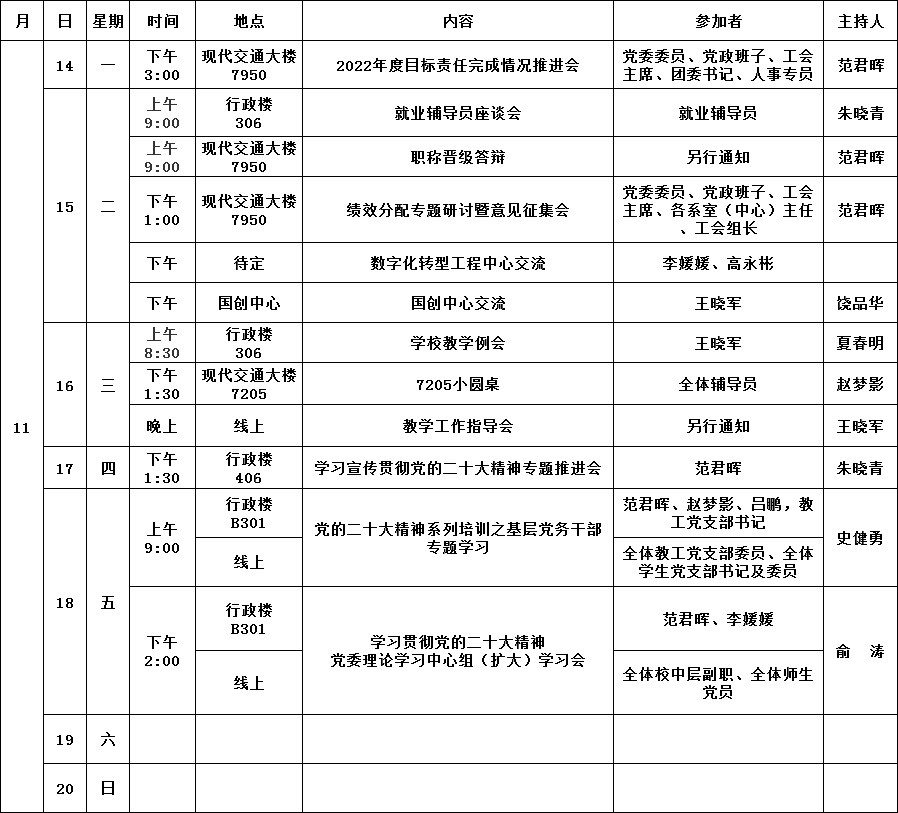 公司第11周活动安排(2022年11月14日-2022年11月20日)