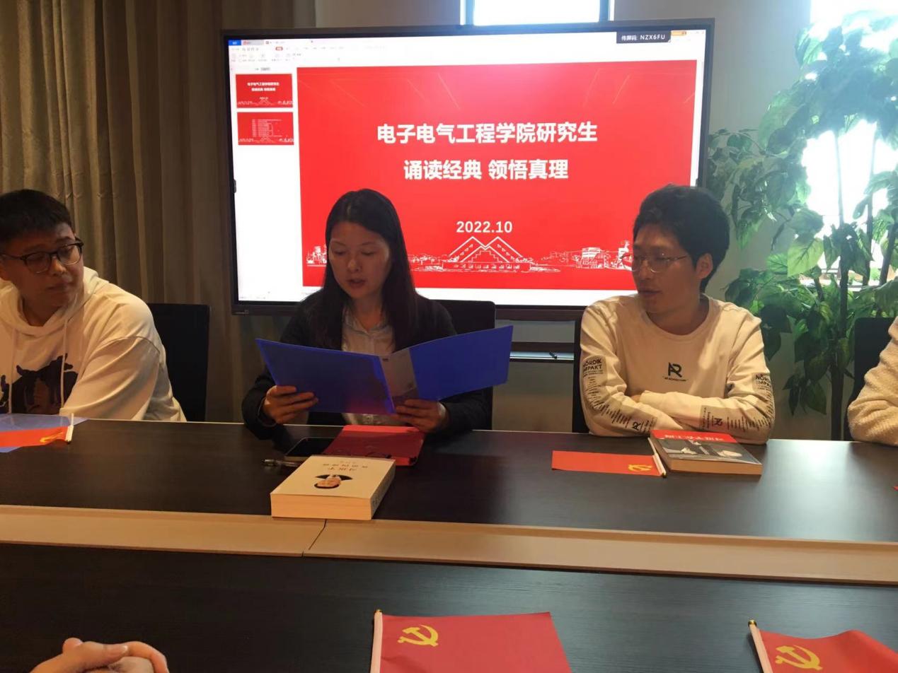 10月25日,为了深入学习党的二十大精神,电气公司研究生第二党支部在公司党建之家诵读习近平总书记讲话“金句”活动。