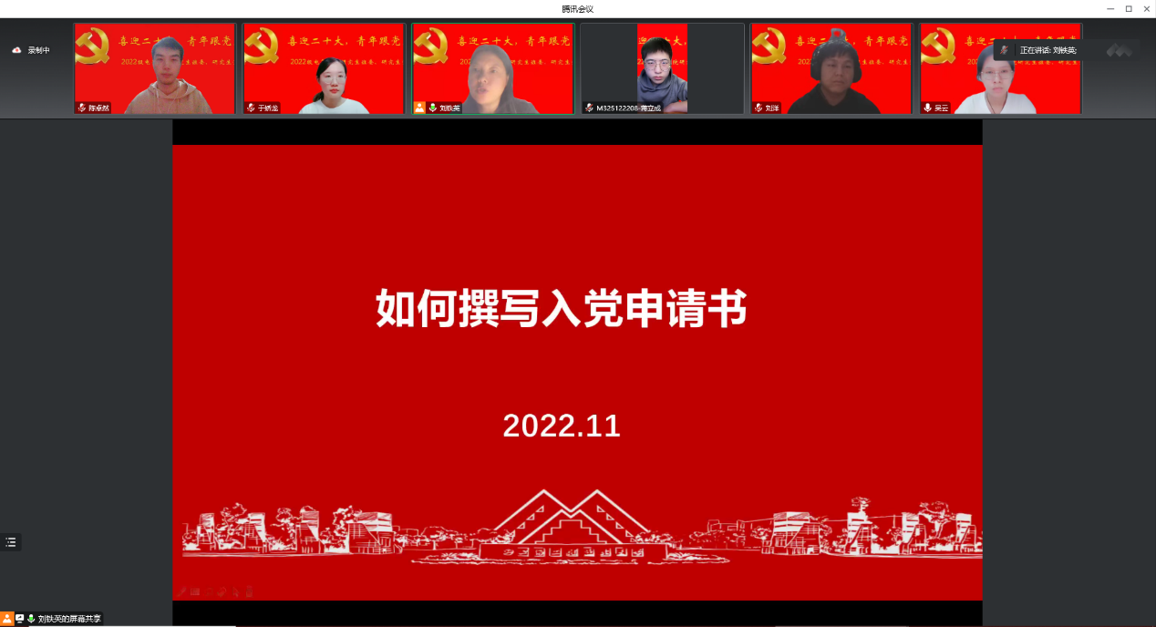 党的二十大召开以来,公司研究生新生入党积极性有很大提高,不少青年学子向党支部表达入党意愿。为进一步推进公司研究生党员队伍建设工作做好铺垫、打牢基础,召唤青年学子坚定不移听党话、感党恩、跟党走。应2022级研究生新生需求,公司2022级研究生辅导员,研究生第二党支部书记刘铁英老师于近日开展了入党启蒙培训,就如何撰写入党申请书进行介绍。