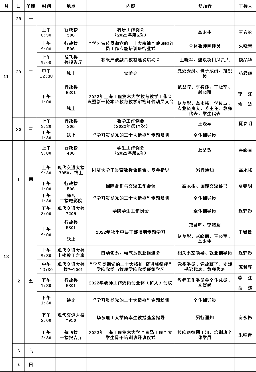 公司第13周活动安排(2022年11月28日-2022年12月4日)