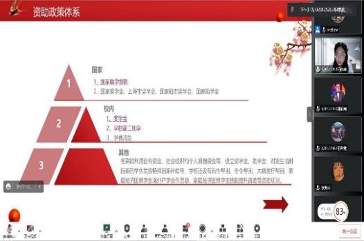 在党的二十大精神感召下,受资助的同学用自己的亲身经历,以线上会议的形式详细地向同学们讲解国家资助的相关政策,鼓励参会员工毕业后投身基层工作,在祖国需要的地方发光发热。