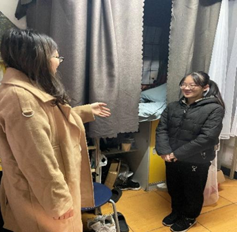 在员工家中,公司副书记赵梦影老师向员工及家长讲解了公司、公司的相关资助政策,并与员工家长进行了深切交谈,详细了解了员工的家庭情况、生活状况、经济来源等。就家庭经济困难员工认定、助学贷款等政策以及员工在校表现情况进行了详细说明。