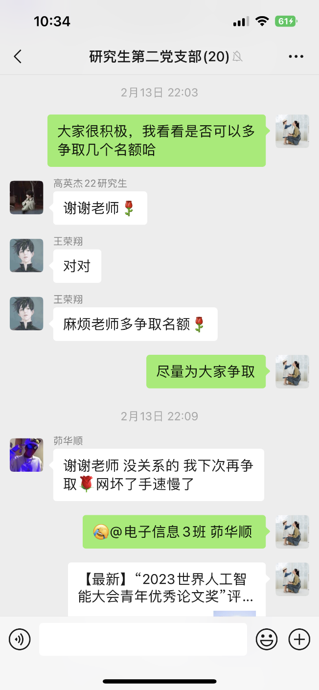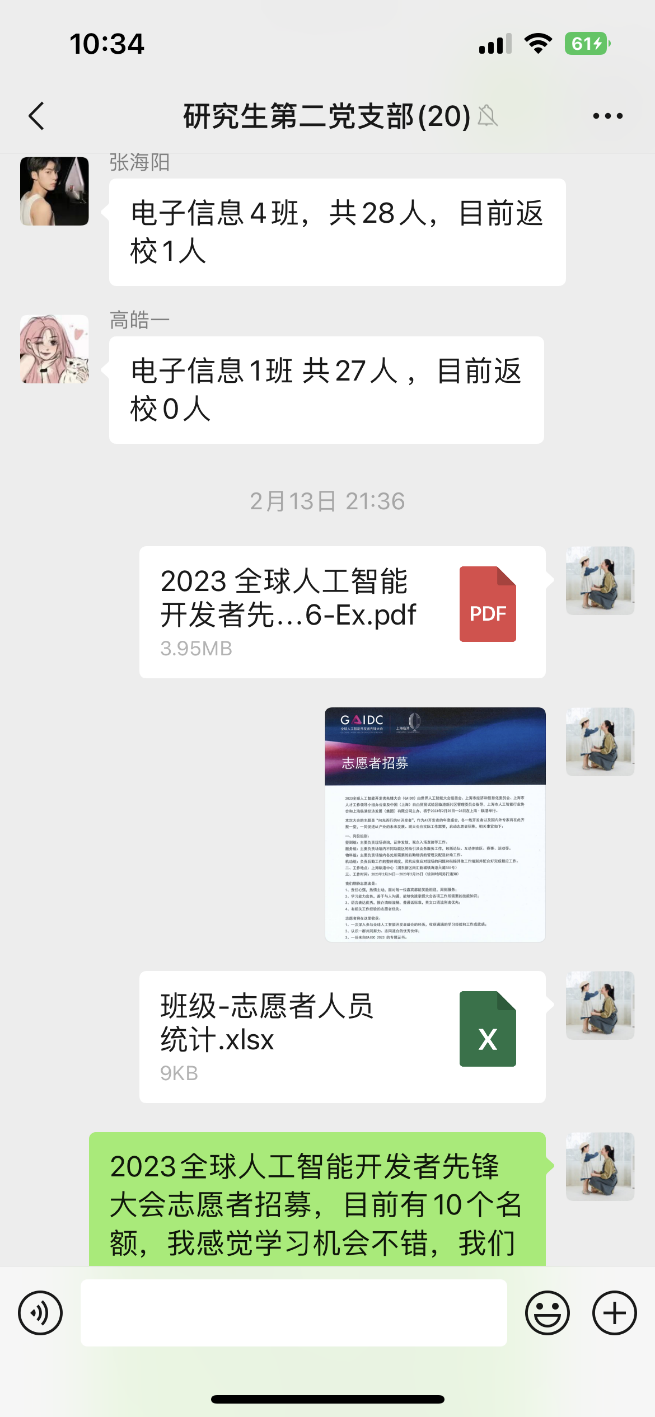 3月5日学雷锋活动来临之际,公司研究生第二党支部以实际行动交上了一份满意的志愿服务答卷。近日,党支部获悉2023全球人工智能开发者先锋大会(GAIDC)将在2月25-26日在上海临港新城举办AI年度盛会,此次学术盛宴与同学们的研究领域契合度较高,大家激动不已,党支部快速响应,踊跃报名参与GAIDC志愿者招募工作,最终10名党员、积极分子有幸发挥专业优势,参与志愿服务工作。