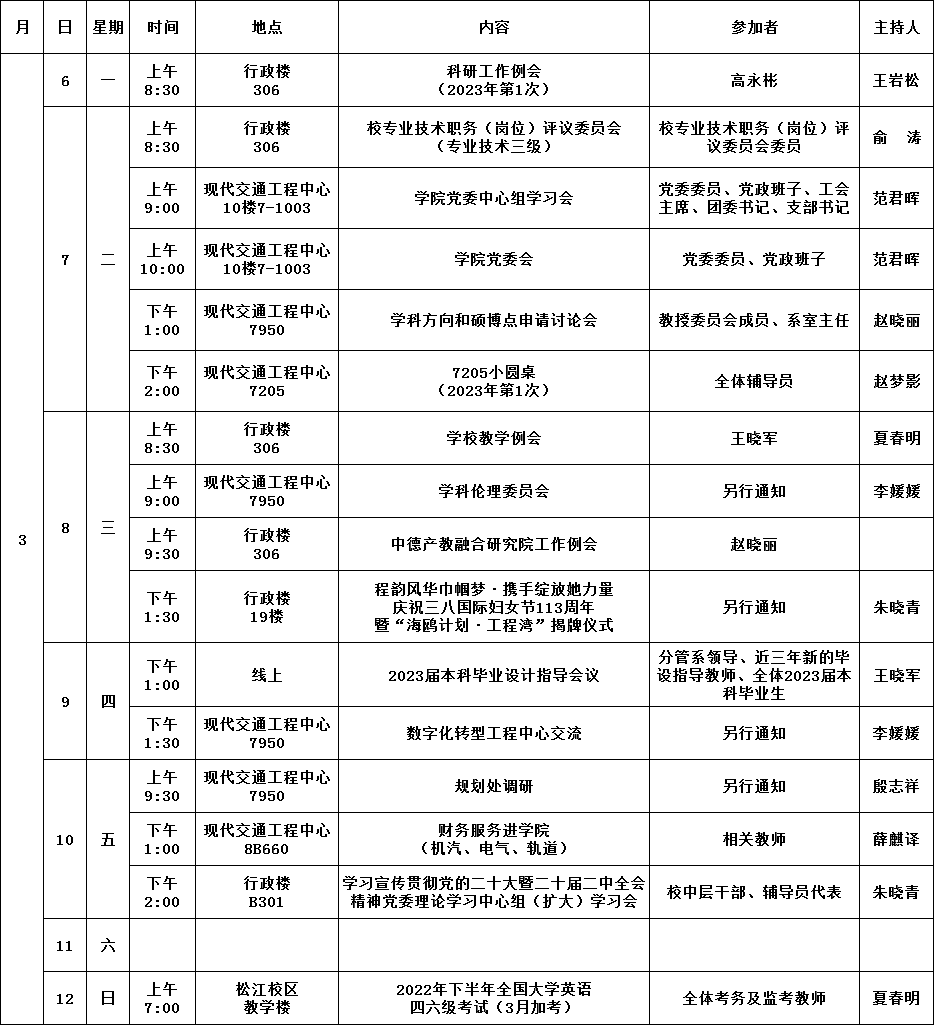 公司第3周活动安排(2023年3月6日-2023年3月12日)