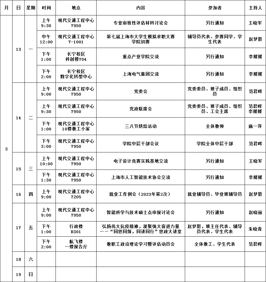 公司第4周活动安排(2023年3月13日-2023年3月19日)