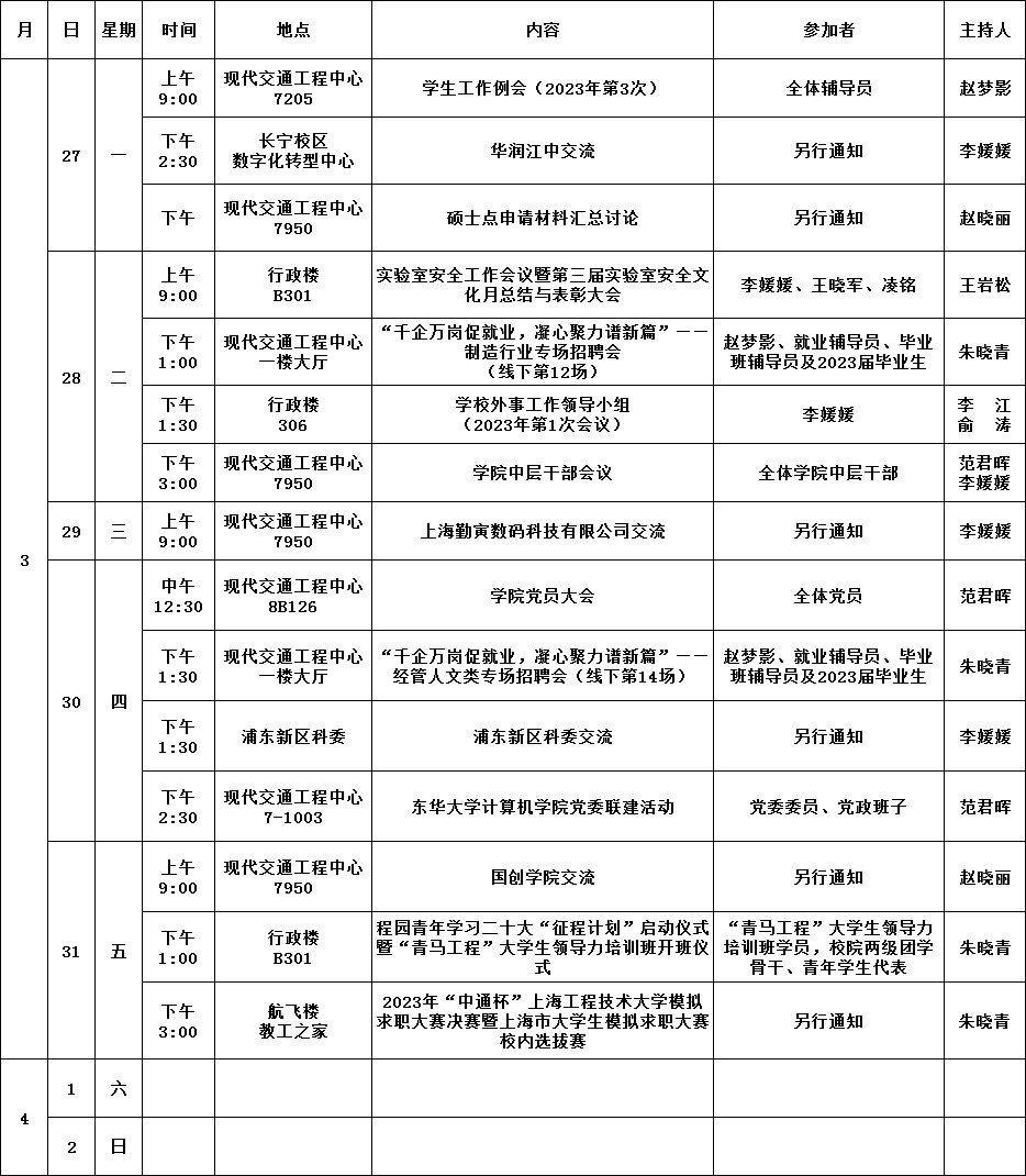 公司第6周活动安排(2023年3月27日-2023年4月2日)