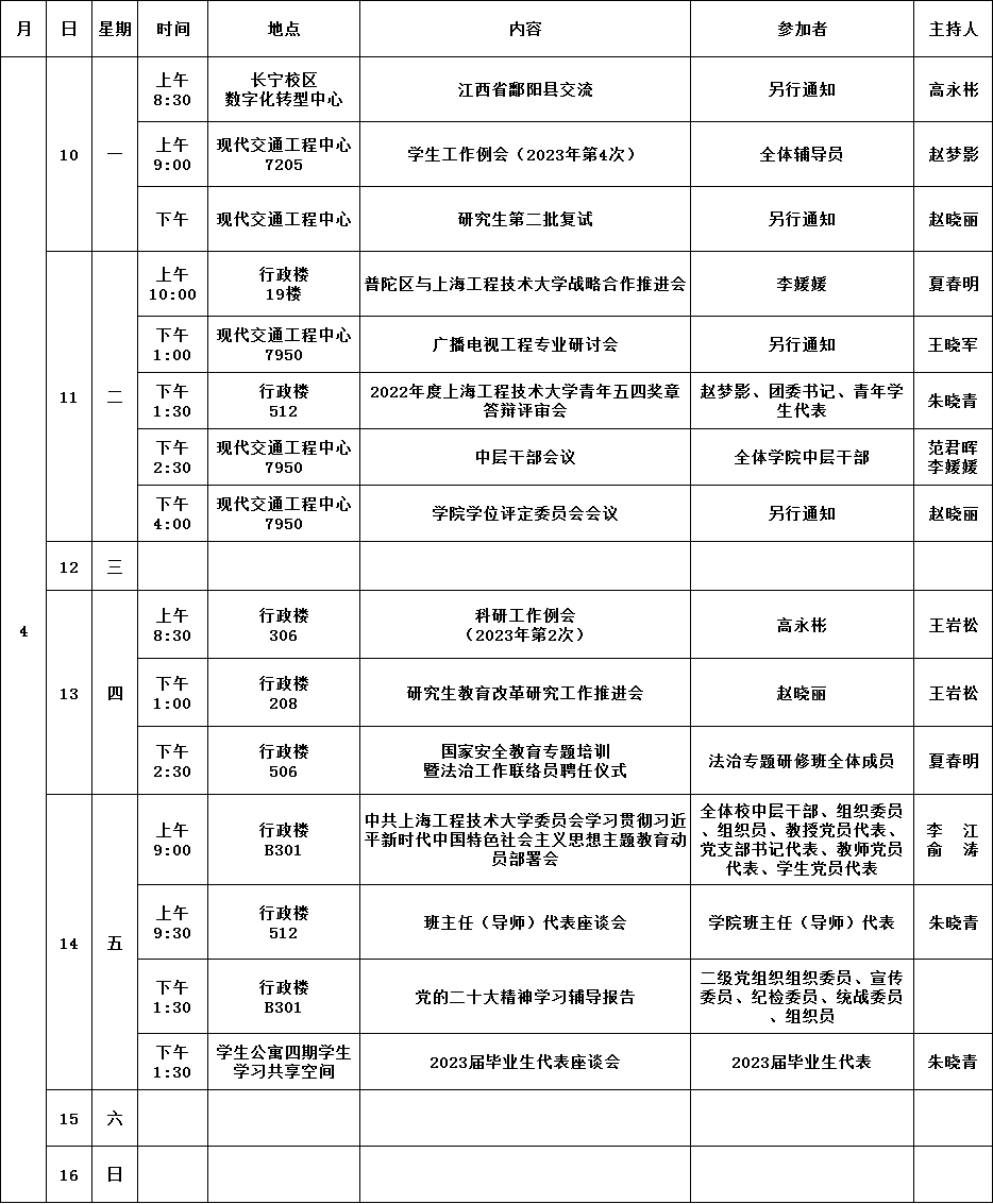 公司第8周活动安排(2023年4月10日-2023年4月16日)