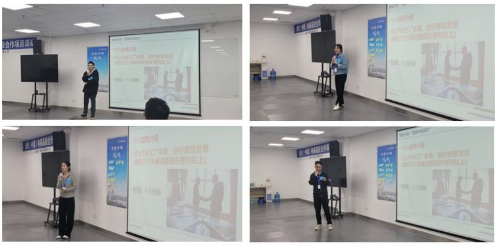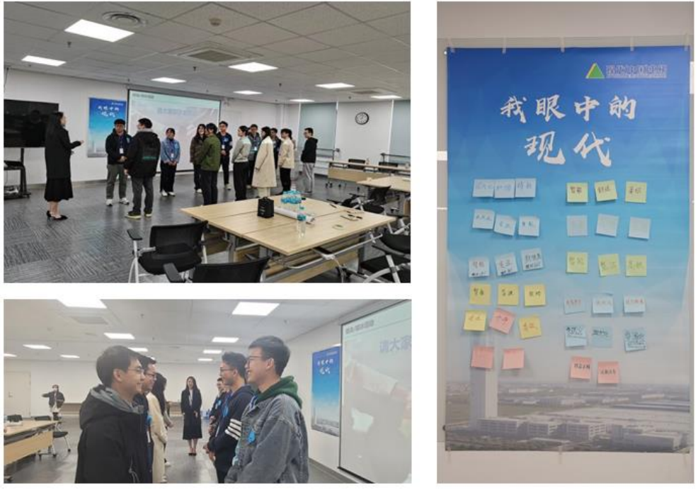 随后,师生一起参加了“我眼中的现代”训练活动,员工们进行个人自我介绍、分享成长过程中的高光时刻,结合上午的工厂参观,提炼2-3个关键词,进行感想发言。全员分为两组,展望2030现代和现代人,用图文幵茂的形式,讨论幵绘制2030现代和现代人。通过本次活动,让大家了解到公司的发展历史和现状,对公司的产品、现代化智能工厂有深入了解,可以改善员工对传统制造业的印象,从而提高入职意愿度。