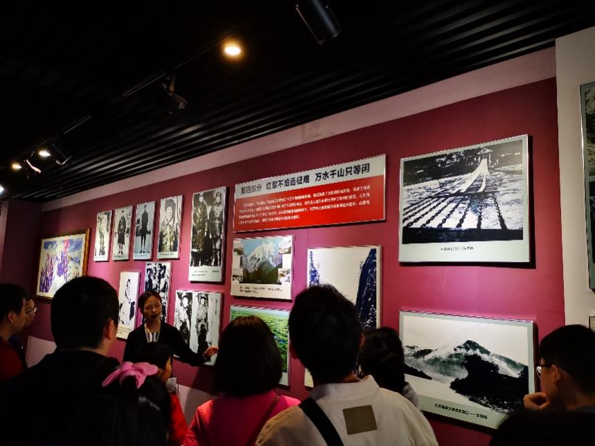 参观红军长征追踪馆。感受革命的艰辛,就要重走一次长征路。90年前,中国工农红军主力撤离长江南北各苏区,转战两年,到达陕甘苏区。中央红军一路上从瑞金出发,召开遵义会议,刘伯承与小叶丹彝海结盟,强渡大渡河,飞夺泸定桥,翻越雪山,过草地,决战腊子口,最后三军会昌胜利大会师。同志们仔细参观着展厅,近距离体会革命先辈们的坚定信仰、凌霄之志和那风云激荡的历史时刻。大家凝神感悟、思考建党历史中的披荆斩棘到星火燎原,浴血辉煌,波澜壮阔,无不为我们党走过的艰辛历程感慨万千,无不为党带领人民取得的伟大成就心潮澎湃。