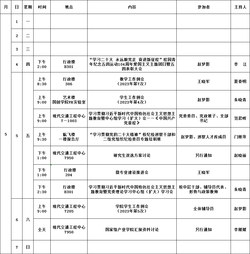 公司第11周活动安排(2023年5月1日-2023年5月7日)