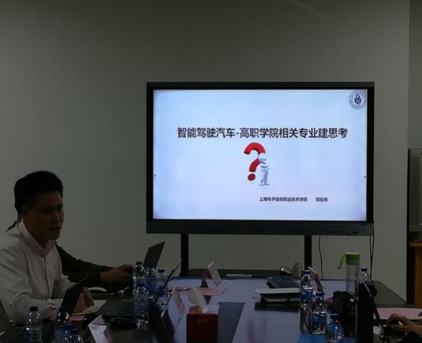 上海电子信息职业技术公司汽车电子系周宏伟主任以“智能驾驶汽车---高职公司相关专业建设思考”为题,从人才需求、专业现状、专业建设和目标展望等方面,分享了上海电子信息职业公司无人车应用的感想。
