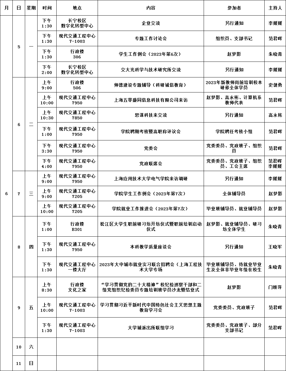 公司第16周活动安排(2023年6月5日-2023年6月11日)