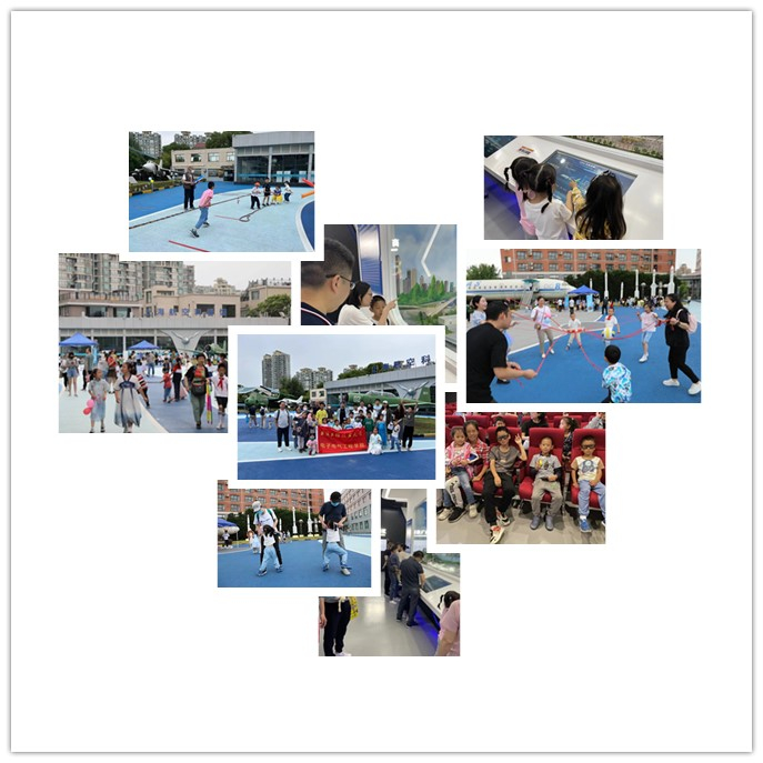 此次活动以亲子运动拓展比赛为主要活动形式,包含亲子踩圈圈、企鹅家家乐踩气球、钻呼啦圈、同心鼓及拔河等。在游戏和互动中促进增进亲子情感交流,同时激发孩子们的团结意识。随后,小朋友们展示才艺,孩子们自主在舞台上展现自己的活力风采。挥洒完汗水,由讲解员带领参观,并对中国民机发展史、中国商飞的3种我国自主知识产权飞机的性能及无人机的作用等做了充分的讲解。最后,孩子们分别进行了上机体验、太空穿梭机体验和3D短篇展示体验等。