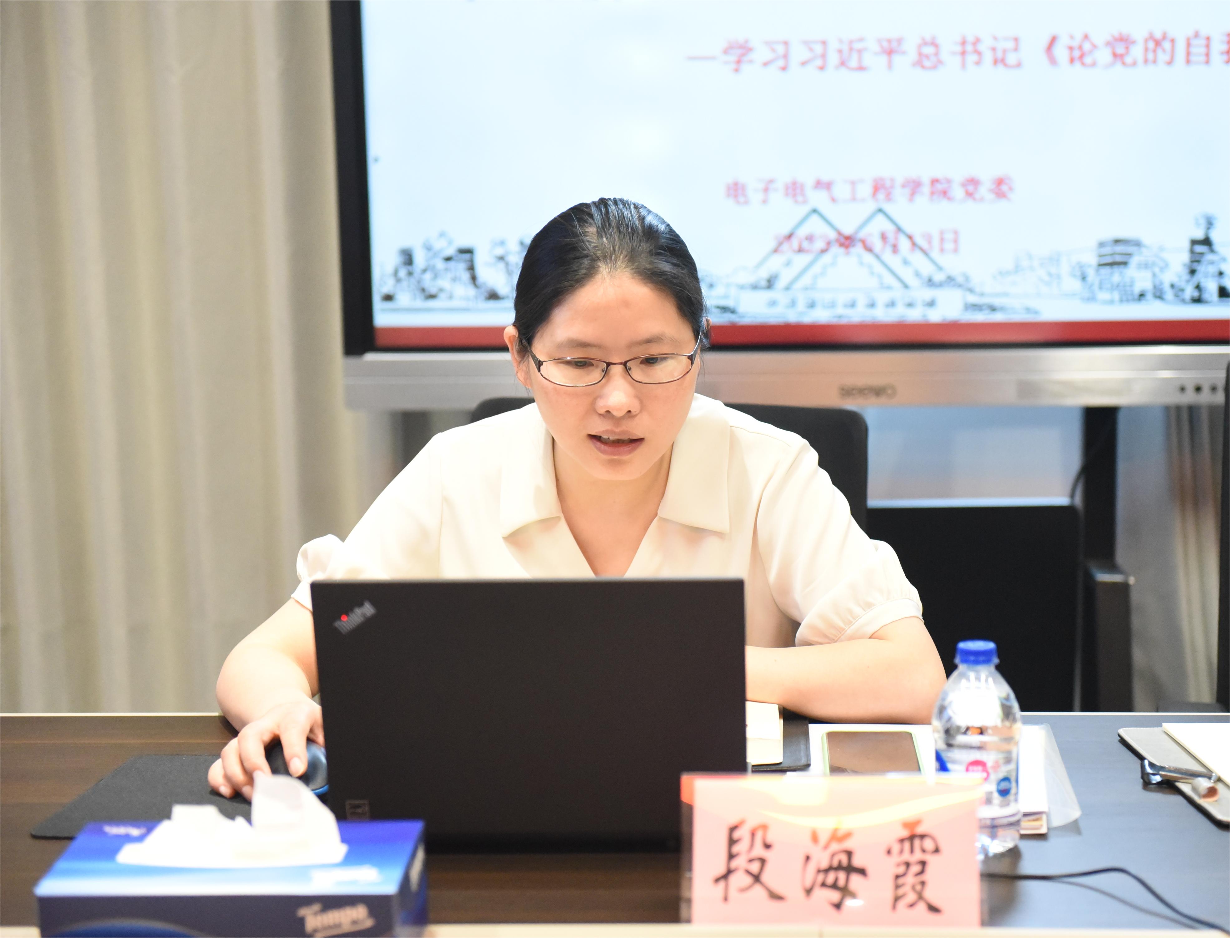 校纪委副书记段海霞以介绍《论党的自我革命》全书概况为切入点,详细讲述了什么是党的自我革命、党为什么要自我革命、党如何进行自我革命,最后结合工作实际详细阐述了如何以持续强化查处惩治、制度治理、教育引导来一体推进不敢腐、不能腐、不想腐。