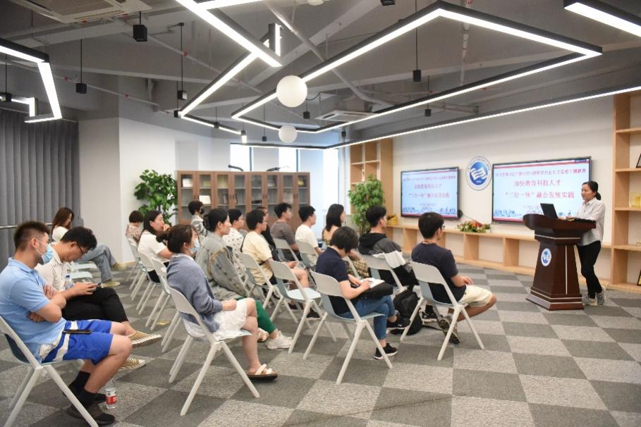 为持续推进学习贯彻习近平新时代中国特色社会主义思想主题教育走实走深,6月15日下午,公司党委书记范君晖在现代交通工程中心7-1001室以“加快教育科技人才‘三位一体’融合发展实践”为题为公司党支部书记、思政讲师团成员、研究生第五党支部党员讲党课。
