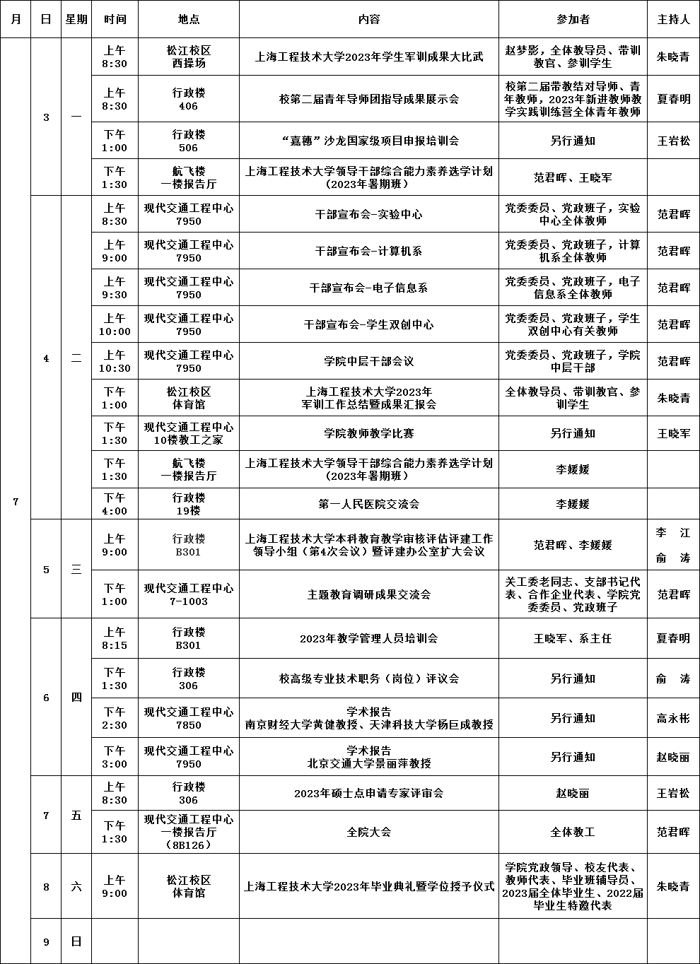 公司第20周活动安排(2023年7月3日-2023年7月9日)