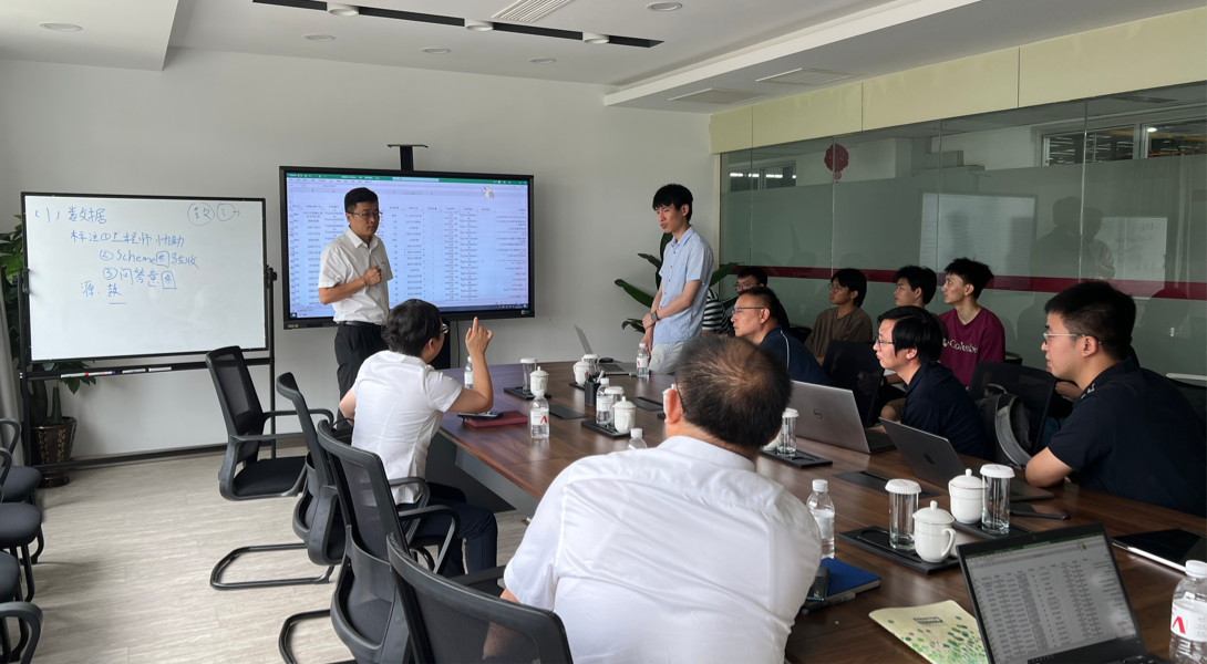 7月14日,董兰飞带领项目组参观了软控总部,了解软控集团发展历史,智能制造解决方案,以及企业文化和宗旨。参观之后,双方马不停蹄的赶往会议室进行更细致地研讨,并于现场成功解决数据标注问题,并决定入驻多名员工和工程师进行一对一交流。