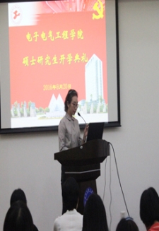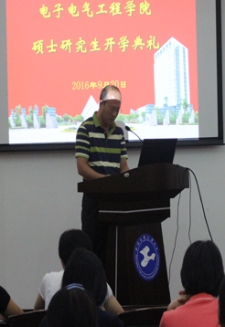 教师代表史志才教授代表全体研究生导师对新同学们的到来表示热烈的欢迎,他指出研究生阶段不但进一步强化学习能力的培养,主要目的是培养员工的科学研究和技术开发能力,同时作为导师,他要求大家会做人、会学习、会生活、能做事,并希望大家坚守激情与梦想,只争朝夕,刻苦专研,以优异的成绩谱写辉煌的人生。