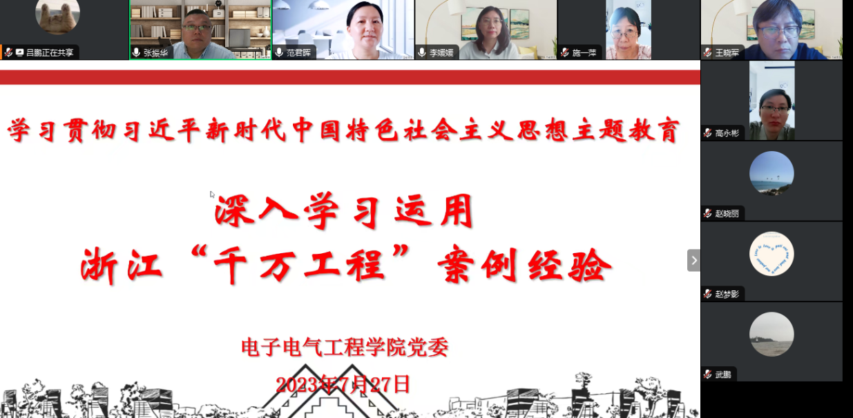 为扎实推进学习贯彻习近平新时代中国特色社会主义思想主题教育,7月27日公司党委通过线上形式开展专题学习会,深入学习浙江“千万工程”案例经验和“牢记嘱托、再建新功”系列专题党课中关于建设人民城市相关内容,公司党委委员、党政班子参加学习,学习会由公司党委书记范君晖主持。