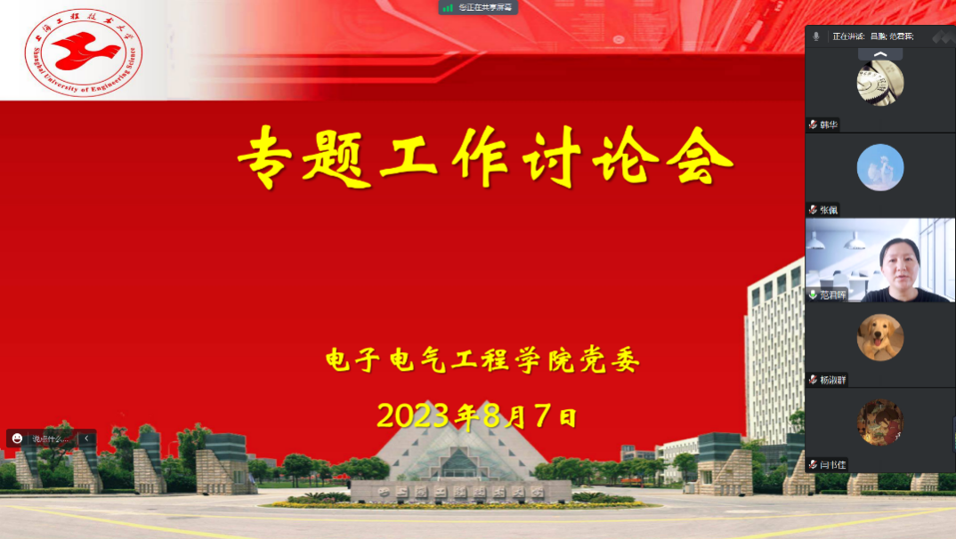 为进一步推进学习贯彻习近平新时代中国特色社会主义思想主题教育走实走深,8月7日上午,公司党委通过线上形式召开党支部专题工作讨论会,就主题教育后续安排、发展党员等工作进行了学习部署。公司党委书记、组织员、党支部书记参加会议,会议由公司党委书记范君晖主持。