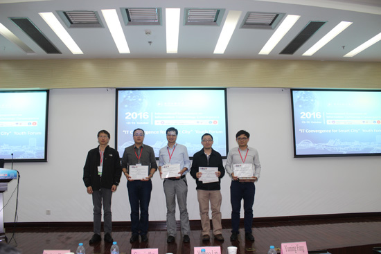 四场报告围绕“IT Convergence for Smart City”这一主题,从不同的角度细致深入地讲述了研究课题和学术思想。在每场报告结束后,都与老师及研究生、本科生同学们进行了热烈的交流,现场学术氛围浓厚。最后,方志军经理和黄正能教授分别为四场报告的主持人和报告人颁发了证书和纪念品,以感谢他们为此次论坛做出的努力。