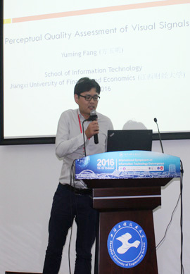 首先由曾国辉副教授介绍了“IT Convergence for Smart City”青年论坛的主题内容及特邀报告人,随后来自天津科技大学的杨巨成教授、河海大学的韩光洁教授、上海交通大学的林巍峣副教授、江西财经大学的方玉明副教授,分别为大家带来了精彩的学术报告。杨巨成教授的“Research on Biometrics for Public Safety and Deep Learning”讲解了在公共安全和深度学习中的生物识别技术,韩光洁教授的“Research on Secure Localization in Underwater Wireless Sensor Networks”介绍了水下无线传感器网络中的安全定位研究,林林巍峣副教授在“Mining and understanding events in crowd scenes”的报告中分享了场景中事件挖掘与理解的最新算法,方玉明副教授在“Perceptual Quality Assessment of Visual Signals”阐述了视觉信号感知质量评价的最新工作进展及后续研究设想。