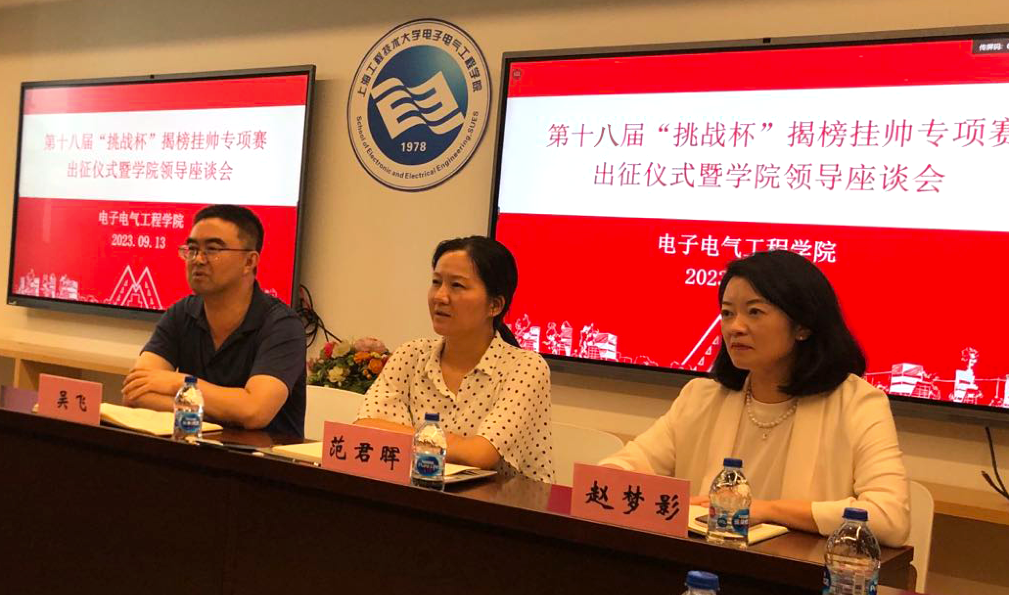 为进一步落实立德树人的根本任务,给予第十八届“挑战杯”专项赛参赛队伍切实的关怀与帮助,为参赛选手鼓舞士气、振奋人心,9月13日下午,公司在教工小家召开第十八届“挑战杯”揭榜挂帅专项赛出征仪式暨公司领导座谈会,院党委书记范君晖、公司党委副书记赵梦影、吴飞教授等老师出席会议。