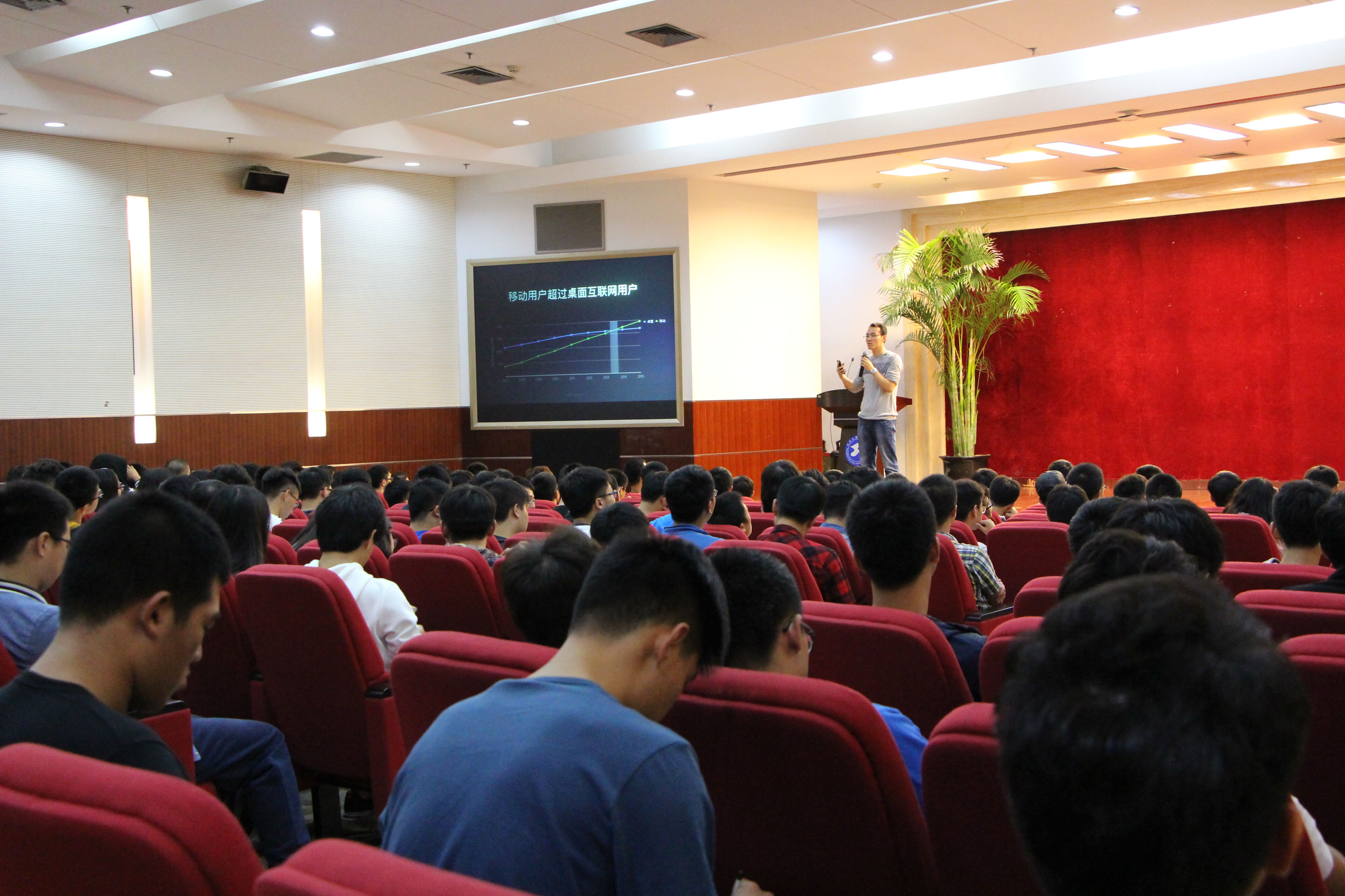 讲座报告中,苹果公司华东地区教育技术资深顾问彭振宇先生站在技术人员和培训人员的角度,重点从软件设计和开发方面开授讲座。彭振宇先生首先指出,在信息时代,移动用户已经超越互联网用户,移动设备给了用户最方便快捷的体验,他提出“Everyone Can Code”的理念,并指出创造力,重构力,以及协作能力的综合运用能达到自我价值的实现。随后,他用生动的语言、深入浅出的讲解,加上动态视频的演示,让在场员工与iOS开发来了第一次亲密接触;彭老师就AppleStore的软件开发详细介绍了Swift语言,着实给同学们上了生动的一课,激发了同学们的兴趣;最后,彭先生向大家介绍了iOS开发俱乐部及iOS开发课程,并对老员工今后的职业生涯进行了指导和建议。他强调,苹果公司注重创新创业人才的培养,并向广老员工提供许多学习和就业机会,希望同学们不断积累经验,超越自我,参与其中并最终受益!