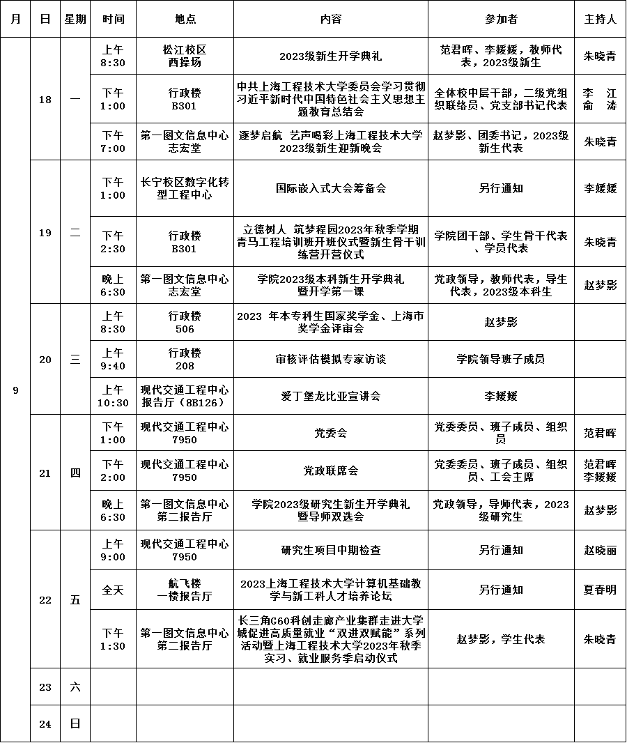 公司第2周活动安排(2023年9月18日-2023年9月24日)
