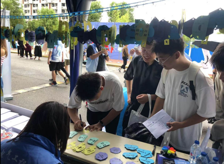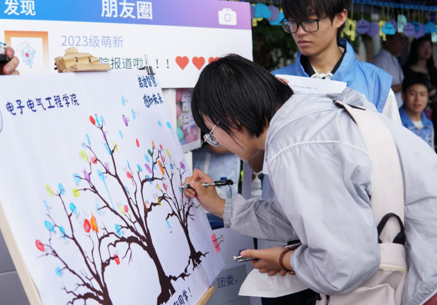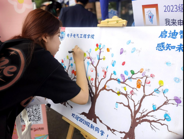 为了让员工更好的了解专业特色,公司在迎新点上融合了诸多电气公司的元素。全场最活泼的吉祥物“小电”是新生们拍照合影的首选。让新生在带有专业名称的意向牌上写下对未来四年学习的期许。并在现场体验互动“iclass”平台,将自己的祝福弹幕投屏,“青春电气、大树成林”23级的萌新在“电院树”摁下手印,留下属于自己的开学印记。“相知陪伴帆布袋”,“温暖常在校园卡套”、“开启未来钥匙扣”和“满心祝福明信片”满满的大礼包都是对新生满满的爱。