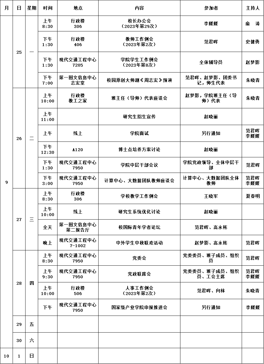 公司第3周活动安排(2023年9月25日-2023年10月1日)