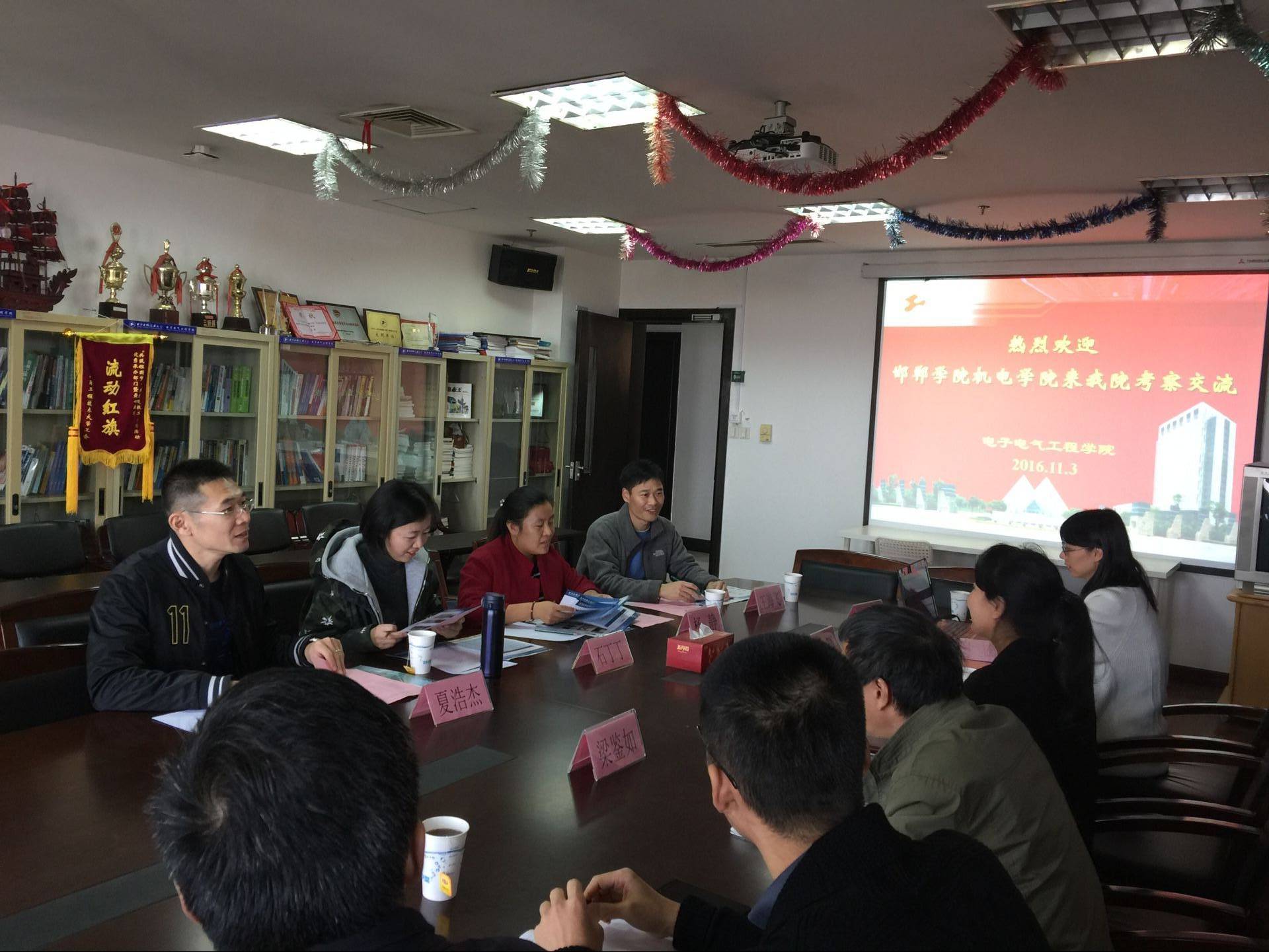 11月3日下午, 河北邯郸公司机电公司副经理王海飞及公司教师杨静、石丁丁、夏浩杰等一行来公司交流访问,公司自动化系主任李媛媛进行了热情接待,双方随后在行政楼918进行了座谈,电气工程系副主任张菁、电气中心实验室副主任梁鉴如老师以及电气工程系部分教师一同参加。