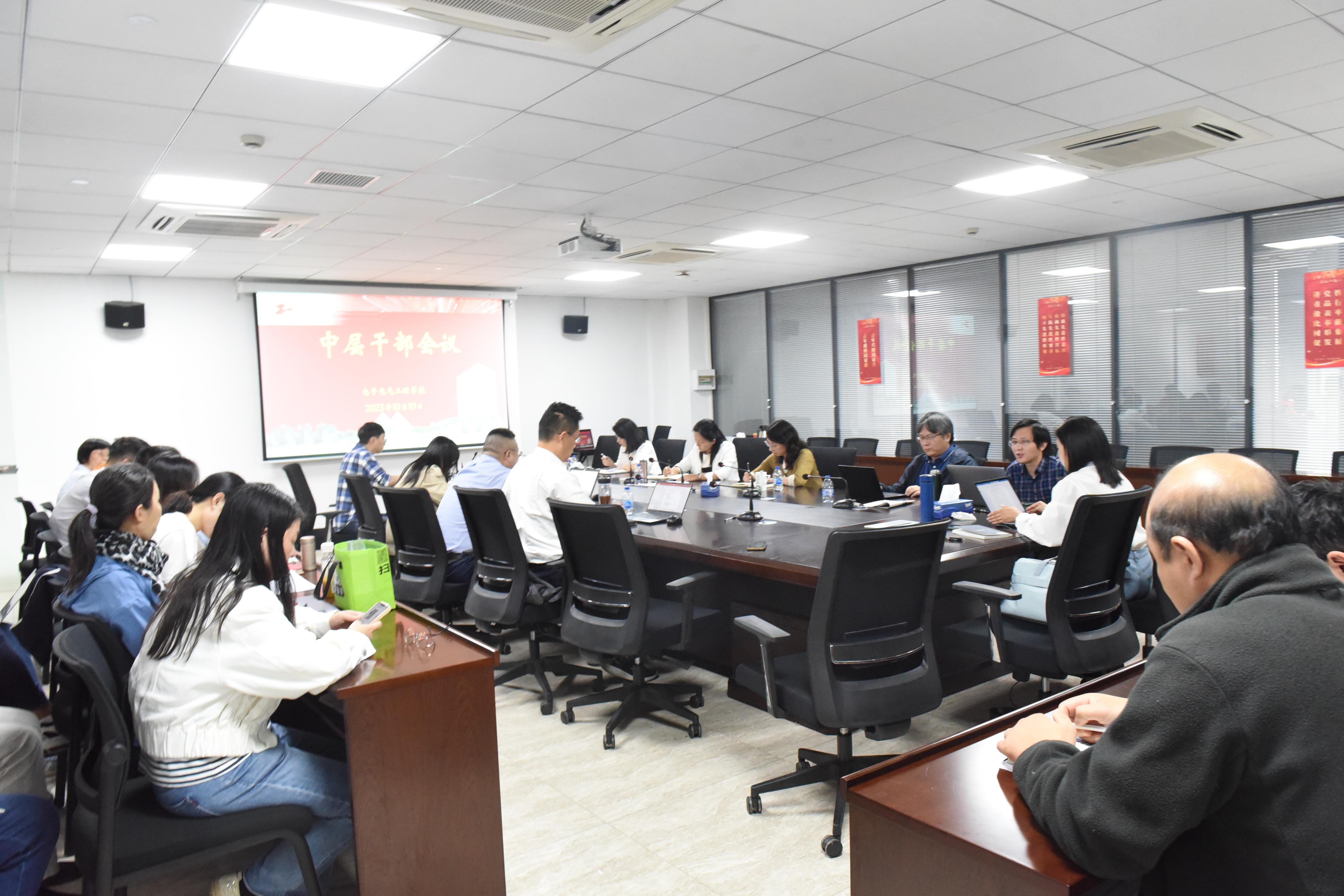 10月10日,公司党委在现代交通工程中心7950室召开公司中层干部会议。会议由公司党委书记范君晖主持,公司党委委员、党政领导、全体中层干部参加会议。