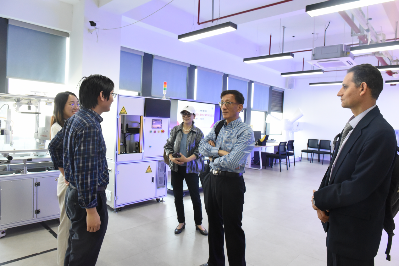 参观了智能感知与控制国际联合实验室,高永彬副经理介绍了实验室的基本情况、研究方向与研究成果。Keyuan Jiang教授和Maged Mikhail教授对实验室的研究成果表示赞赏,希望后续进一步的合作。