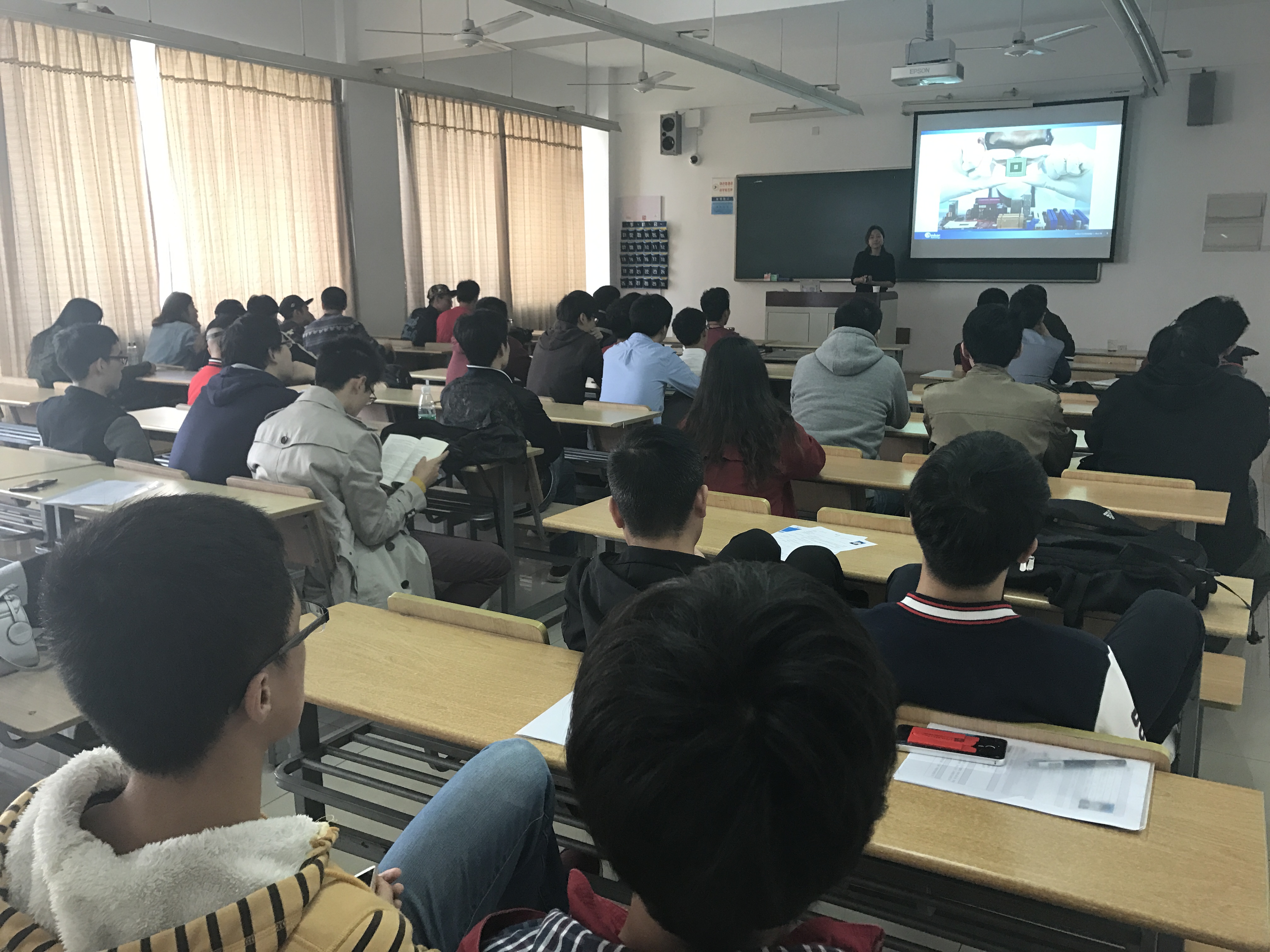 11月18日13:00,安靠封装测试(上海)有限公司在公司教学楼E406召开就业宣讲会,公司人事负责人周女士受到同学们的热烈欢迎。