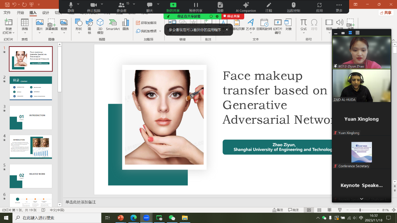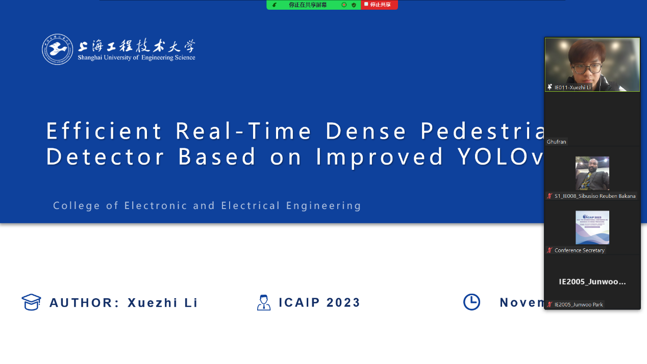 公司计算机系施一萍老师指导的研究生李学智和赵紫云两位同学参加了此次会议,并对本次会议录用的论文“Efficient Real-Time Dense Pedestrian Detector Based on Improved YOLOv7-tiny”和“Face makeup transfer based on Generative Adversarial Network”分别做了口头线上交流。此次会议对于促进全球图像处理领域的发展,促进学术交流,开拓学术视野具有重要作用。(ICAIP2017国际学术会议曾在泰国曼谷举办)。