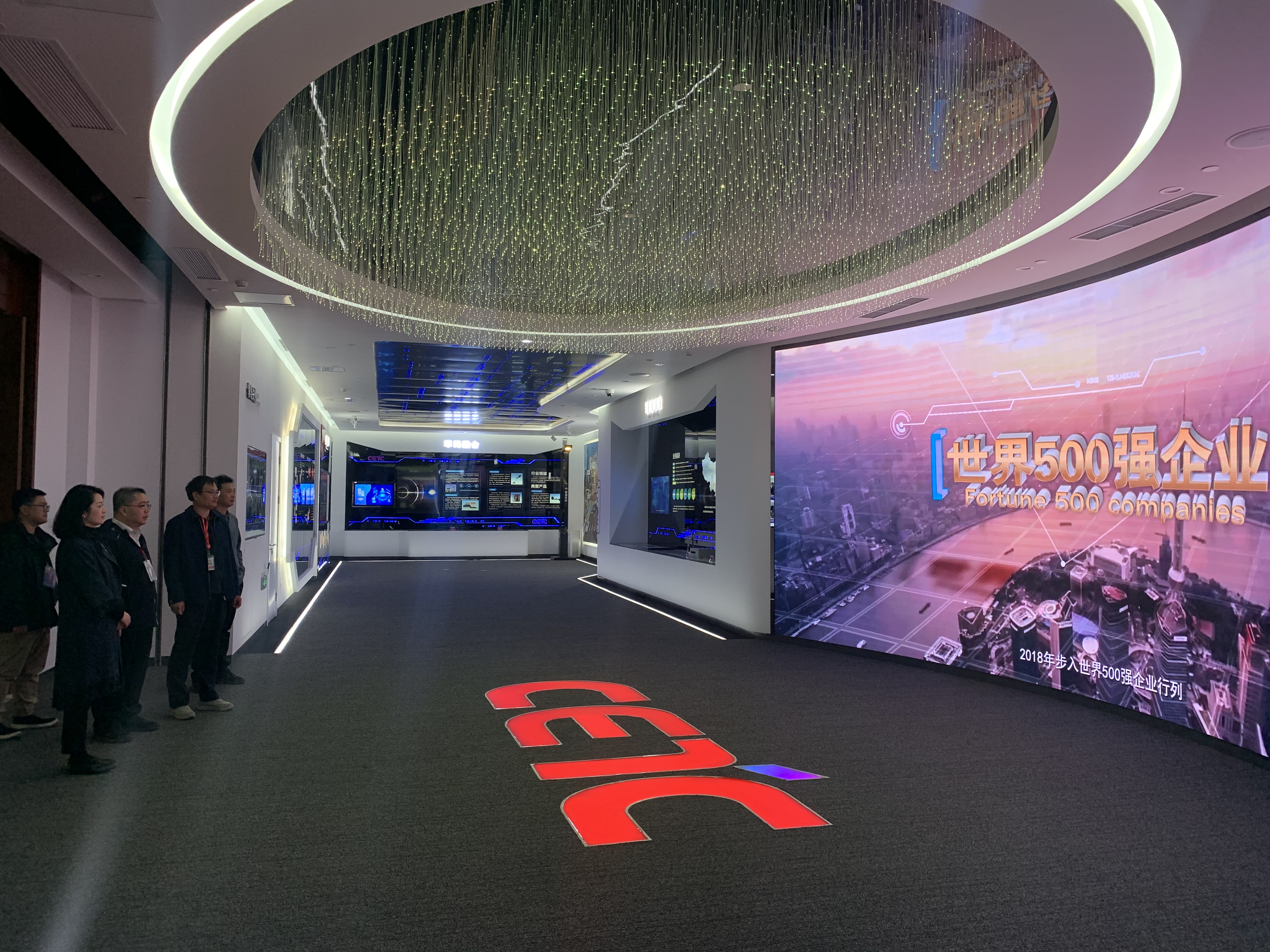 会前,副总经理储昭兵带领参观了中国电科50所展厅。