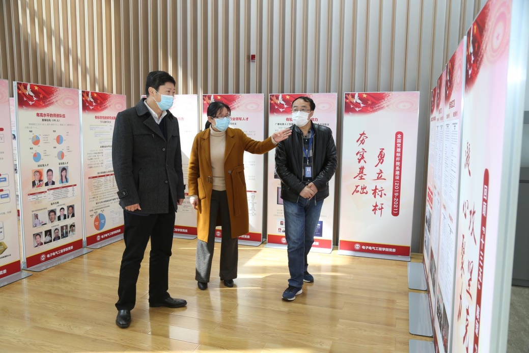 会前,李江书记一行参观了党建宣传栏和微电网运行仿真实验室、计算机视觉及硬件实验室以及智能媒体研究所等重点实验室。