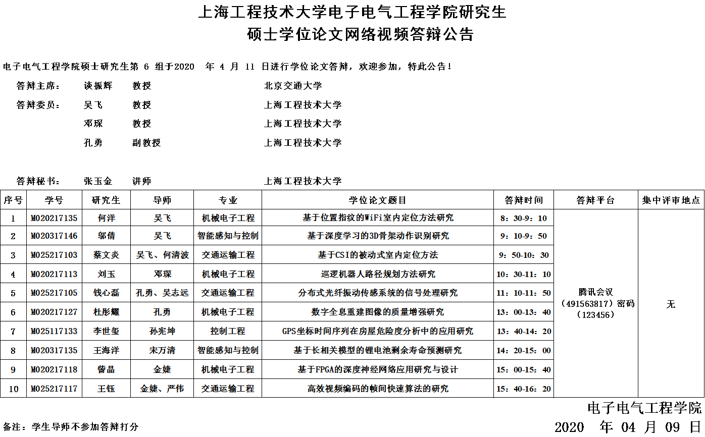 3044永利集团2020年4月11日第6组网络视频答辩公告