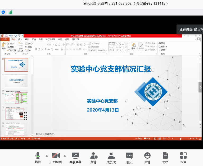 本次会议,支部书记简玉梅老师汇报了支部2020年上半年工作计划与实施情况,支部接下来的重点工作推进方法以及党建样板支部的建设,实验师目前遇到的困难等情况进行了讨论。大家根据自己的情况,分享了各自的想法。