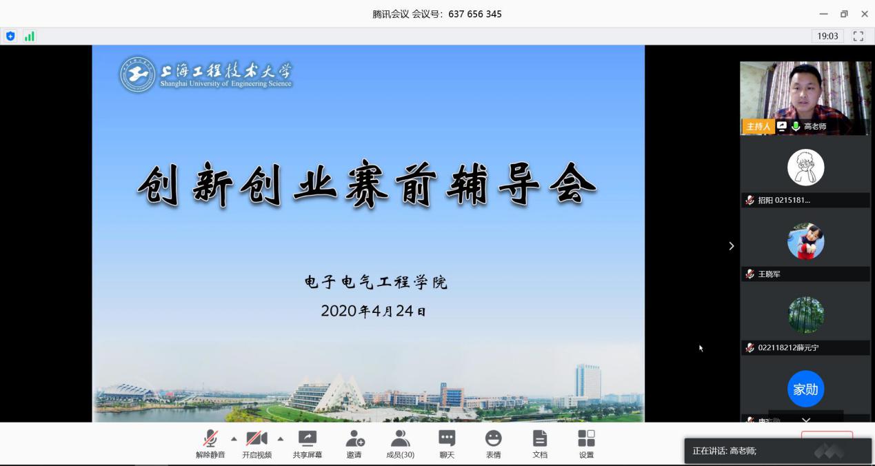 启迪创新智慧,奋发创业有为。公司大力支持创新型人才的培养和指导教育,立足2020年“创青春”“互联网+”大赛陆续开赛之际,为了更好地激发公司师生的参赛热情,指导创新创业团队有的放矢、备战备赛,2020年4月24日晚,公司通过腾讯会议平台积极组织开展了线上“创新创业赛前辅导会”。辅导会特别邀请了公司2014届知名创业员工邓洋洋先生和2016级“双创人物之星”唐家勋同学做分享嘉宾。