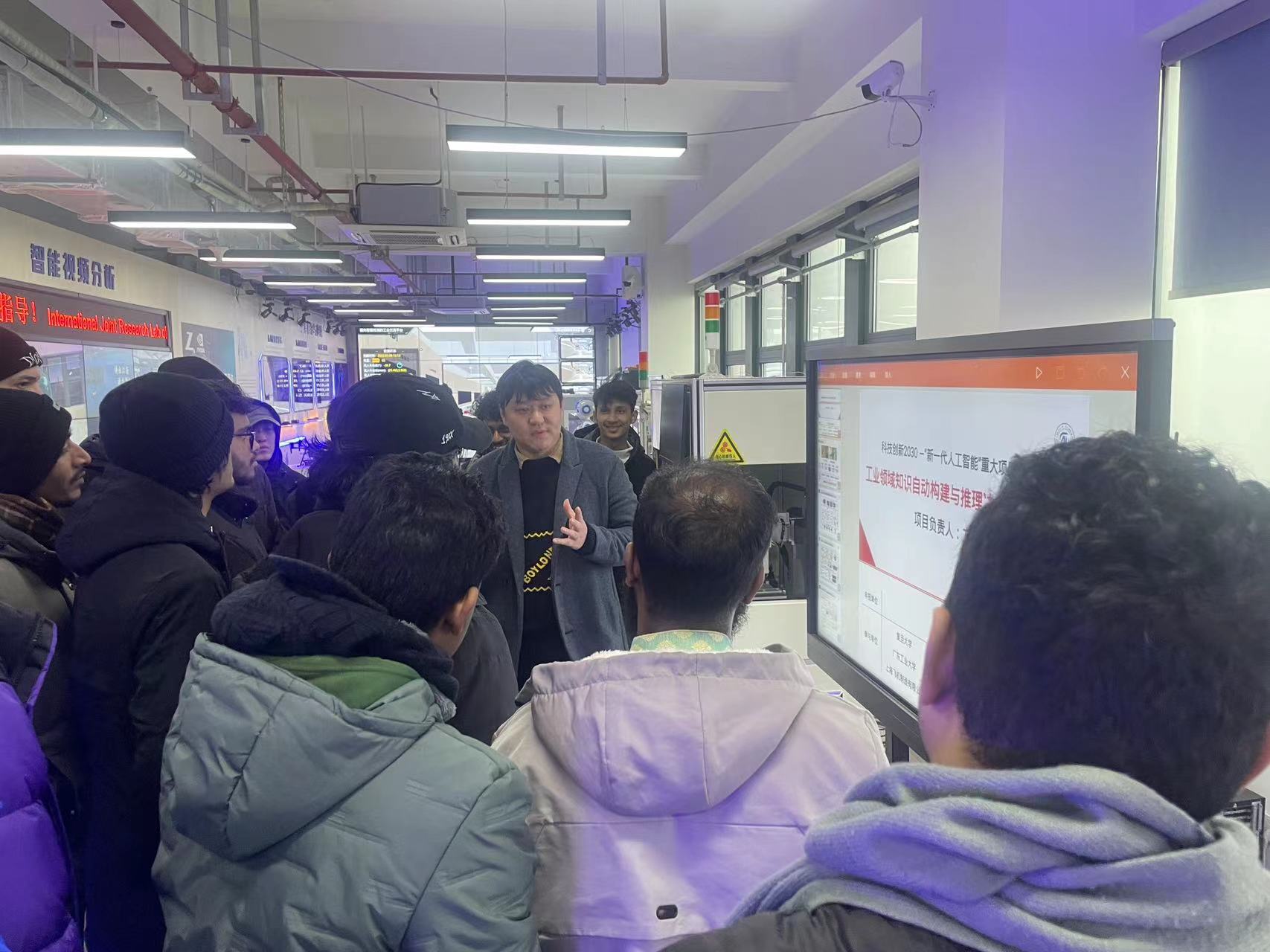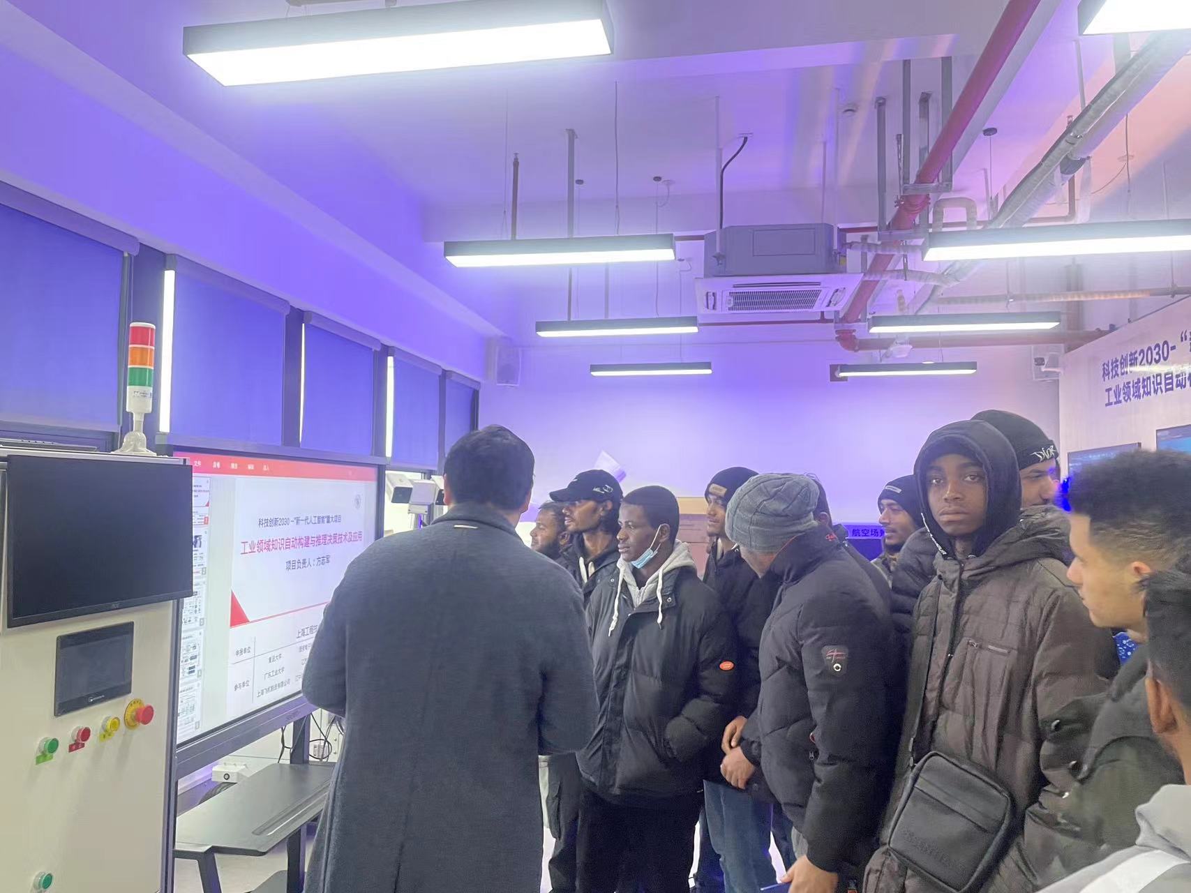 12月18日,公司人工智能国际班的大一新生一行来到松江校区,参加国教育院组织的新生校园融入日活动。下午他们由公司松江校区的优秀员工代表引导到公司5G+人工智能应用联合创新实验室进行参观学习。公司余文俊老师用英语为员工们进行了热情洋溢的参观介绍并对专业知识进行解答,员工代表为他们作了松江校区学习和生活的介绍。