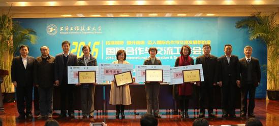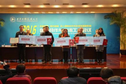 12月23日下午,在图文信息中心第二报告厅召开的公司2016年国际合作与交流工作会议上,公司获得今年全部五项国际合作与交流奖励,分别包括:职工教育优秀奖、员工国际化教育优秀奖、国际科研合作优秀个人、高层次外籍专家引进优秀奖和国际合作与交流优秀公司。全体校领导为获奖的优秀公司及优秀个人颁发了荣誉证书,公司党委书记陆展华,经理方志军,副经理李媛媛分别上台领奖。