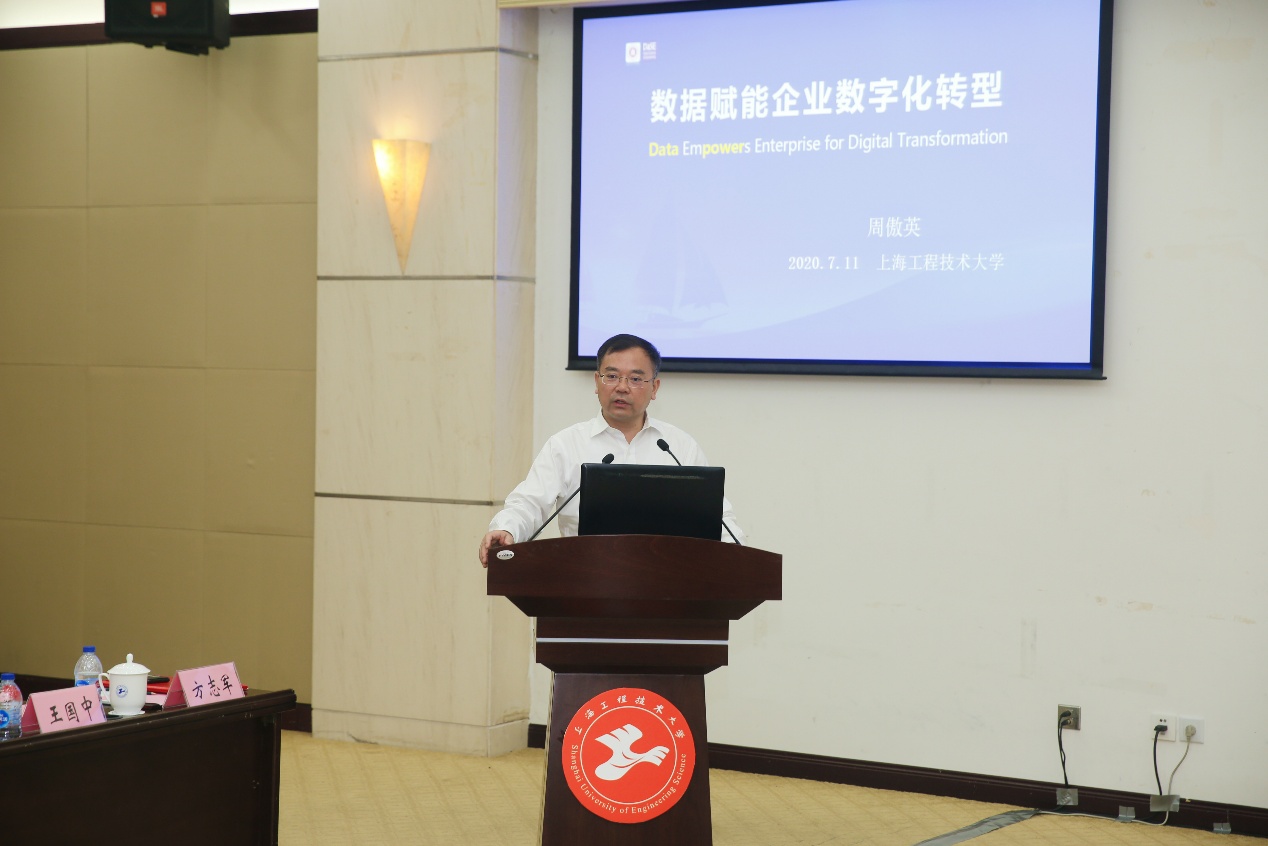 会上,华东师范大学副董事长周傲英教授作了题为“数据赋能企业数字化转型”的主题报告,阐述了在新型信息技术背景下,只有充分发挥数据的威力才能达成“以人为本”和“人在回路”这一信息化的根本目标。