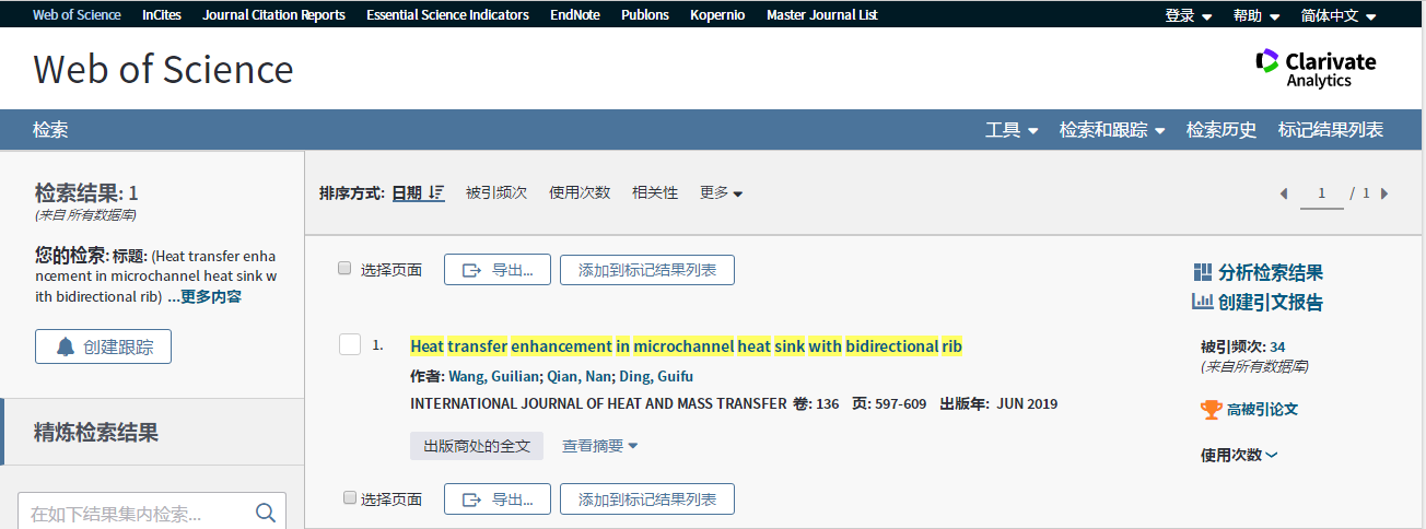 Guilian Wang*,Qian Nan, and Guifu Ding. Heat transfer enhancement in microchannel heat sink with bidirectional rib[J]. International Journal of Heat and Mass Transfer, 136 (2019) 597–609.